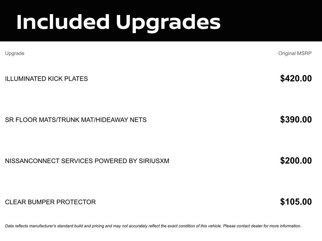 The all new Nissan INFINITI Of Danbury is proud to present you with another True Market Priced Vehicle. This 2025 Nissan Altima 2.5 SR is loaded with the following Factory Options: CVT with Xtronic CVT with Xtronic, 4-Wheel Disc Brakes, 6 Speakers, ABS brakes, Air Conditioning, Alloy wheels, AM/FM radio: SiriusXM, Auto High-beam Headlights, Blind Spot Warning, Brake assist, Bumpers: body-color, Clear Bumper Protector, Delay-off headlights, Driver door bin, Driver vanity mirror, Dual front impact airbags, Dual front side impact airbags, Electronic Stability Control, Four wheel independent suspension, Front anti-roll bar, Front Bucket Seats, Front Center Armrest, Front reading lights, Fully automatic headlights, Illuminated entry, Illuminated Kick Plates, Knee airbag, Leather Shift Knob, Low tire pressure warning, NissanConnect featuring Apple CarPlay and Android Auto, NissanConnect Services Powered by SiriusXM, Occupant sensing airbag, Outside temperature display, Overhead airbag, Overhead console, Panic alarm, Passenger door bin, Passenger vanity mirror, Power door mirrors, Power driver seat, Power steering, Power windows, Radio data system, Radio: AM/FM Audio System, Rear anti-roll bar, Rear Parking Sensors, Rear reading lights, Rear seat center armrest, Rear side impact airbag, Rear window defroster, Remote keyless entry, Security system, Speed control, Speed-sensing steering, Speed-Sensitive Wipers, Split folding rear seat, Sport Seat Trim, SR Floor Mats/Trunk Mat/Hideaway Nets, Steering wheel mounted audio controls, Tachometer, Telescoping steering wheel, Tilt steering wheel, Traction control, Trip computer, Unique Sport Seats, Variably intermittent wipers, and Wheels: 19 Sport Machined Alloy!!