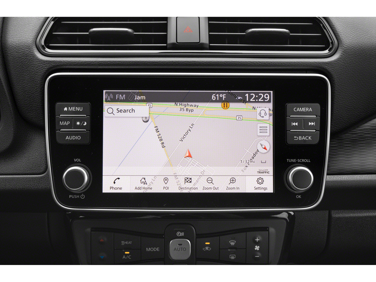 - Radio: NissanConnect EV w/Navigation/SiriusXM -inc: 8" color display w/multi-touch control, Nissan door to door navigation w/3D building graphics and satellite imagery, connected navigation features including online POI search, online premium traffic information, Over-the-Air (OTA) updates for head unit firmware and navigation map software via a Wi-Fi WPA2 connection, Apple CarPlay, Android Auto, SiriusXM radio w/advanced audio features, SiriusXM Traffic, SiriusXM Travel Link (weather, movie listings, stock info, sports and parking), USB connection port for iPod interface and other compatible devices, Siri Eyes Free, Bluetooth® hands-free phone system, streaming audio via Bluetooth®, hands-free text messaging assistant and 6 speakers