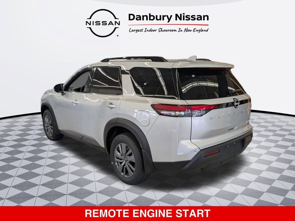 Bruce Bennett Nissan INFINITI of Danbury is proud to present you with another True Market Priced Vehicle. This 2025 Nissan Pathfinder SV is loaded with the following Factory Options: 4WD Cargo Package (Cargo Area Protector, Cargo Net, and First Aid), 4WD, 3rd row seats: bench, 4-Wheel Disc Brakes, 6 Speakers, ABS brakes, Air Conditioning, Alloy wheels, AM/FM radio: SiriusXM, Auto High-beam Headlights, Automatic temperature control, Bench Seat Carpeted Floor Mats (set of 4), Brake assist, Bumpers: body-color, Cloth Seating Surfaces, Delay-off headlights, Driver door bin, Driver vanity mirror, Dual front impact airbags, Dual front side impact airbags, Electronic Stability Control, Emergency communication system, Four wheel independent suspension, Front anti-roll bar, Front Bucket Seats, Front Center Armrest, Front dual zone A/C, Front reading lights, Fully automatic headlights, Heated door mirrors, Heated Front Bucket Seats, Heated front seats, Illuminated entry, Knee airbag, Leather steering wheel, Low tire pressure warning, Nissan USB Charging Cable Set, NissanConnect featuring Apple CarPlay and Android Auto, Occupant sensing airbag, Outside temperature display, Overhead airbag, Overhead console, Panic alarm, Passenger door bin, Passenger vanity mirror, Power door mirrors, Power driver seat, Power Liftgate, Power steering, Power windows, Radio data system, Radio: AM/FM Audio System with NissanConnect, Rear air conditioning, Rear anti-roll bar, Rear Parking Sensors, Rear reading lights, Rear seat center armrest, Rear side impact airbag, Rear window defroster, Rear window wiper, Reclining 3rd row seat, Remote keyless entry, Security system, Speed control, Speed-sensing steering, Split folding rear seat, Spoiler, Steering wheel mounted audio controls, Tachometer, Telescoping steering wheel, Tilt steering wheel, Traction control, Trip computer, Turn signal indicator mirrors, Variably intermittent wipers, and Wheels: 18 x 8J Painted Alloy!! Price includes: $5000 - Nissan Customer Cash. Exp. 03/31/2026