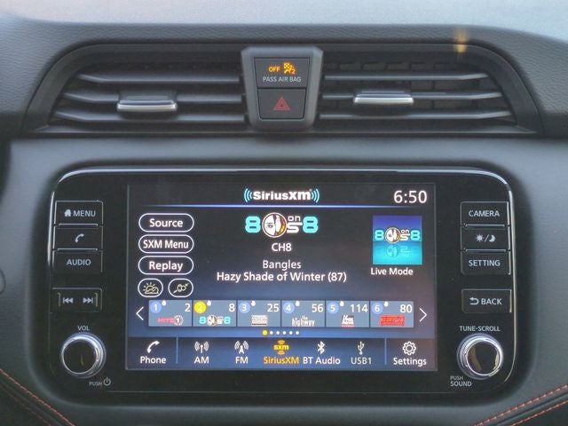 - Radio: AM/FM Audio System -inc: RDS, MP3, aux-in, 8" color touchscreen display (A-IVI PH2 DA), SiriusXM satellite radio, NissanConnect Services powered by SiriusXM featuring Apple CarPlay and Android Auto, Bluetooth® hands-free phone system, streaming audio via Bluetooth®, interface for iPod and other compatible devices, hands-free text messaging assistant, Siri Eyes Free/Google Assistant voice recognition, 6 speakers, 3 USB ports (2-charge only)