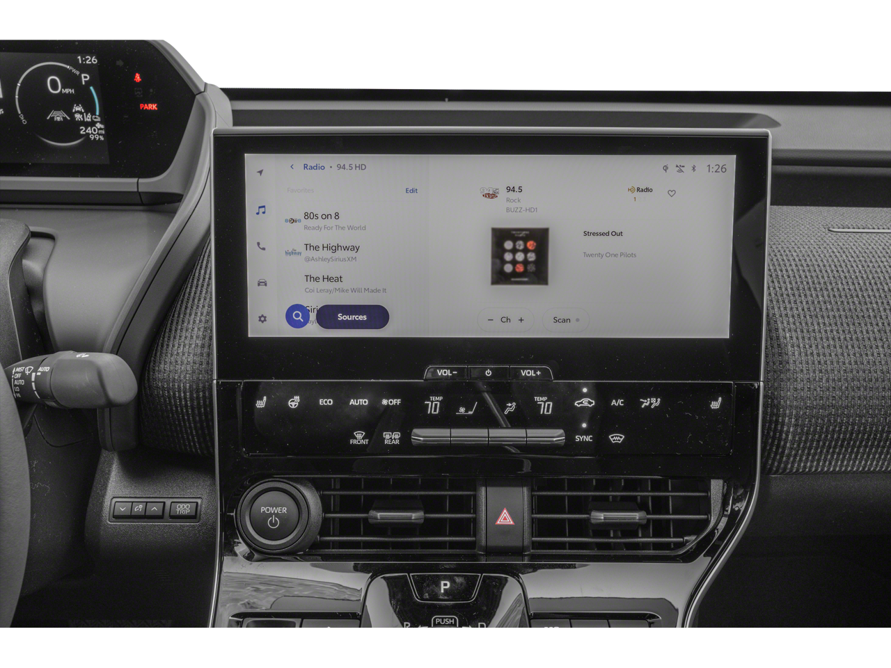 - Radio: 12.3" Toyota Audio Multimedia w/6 Speakers -inc: 1 USB-A front media port, wireless Android Auto compatible, wireless Apple CarPlay compatible, SiriusXM w/3-month Platinum Plan subscription, Drive Connect (subscription required), Safety Connect w/1-year trial subscription, Service Connect w/3-year trial subscription, Remote Connect w/3-year trial subscription and Wi-Fi Connect w/30-day or up to 3 GB trial subscription